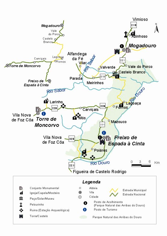 Torre de Moncorvo es el centro irradiador de este circuito, al recibir, por Pocinho, a los viajantes provenientes de Vila Nova de Foz Coa, pero tambien a los que de Regua y de Oporto buscan la region a través de la lěnea del ferrocarril del Duero y por su via fluvial. Desde Barca de Alva se puede viajar tambien, por el rio y por la carretera (N221) que, atravesando Freixo de Espada a Cinta llega a Carvicais (N220) y sube directamente a aquella sede del municipio. Su situacion geográfica y estructura de hosteleria y restauración le permite funcionar como doble portal del Parque Natural del Duero Internacional y del Parque Arqueologico del Valle del Côa.